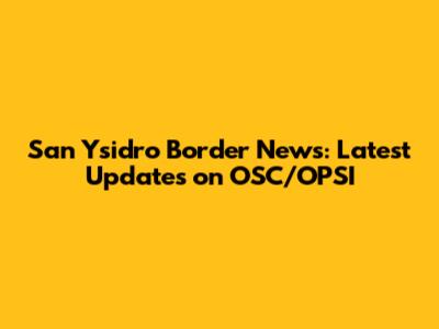 San Ysidro Border News: Latest Updates On OSC/OPSI