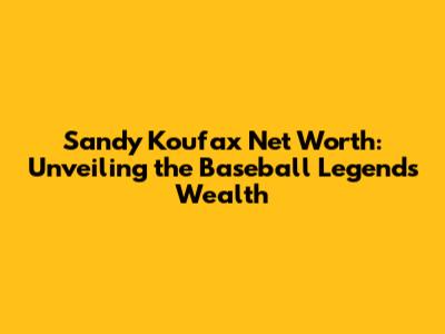 Sandy Koufax Net Worth: Unveiling The Baseball Legend's Wealth