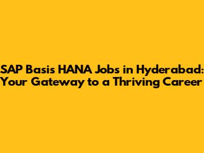 SAP Basis HANA Jobs: Opportunities In Hyderabad