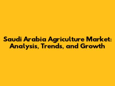Saudi Arabia Agriculture Market: Analysis, Trends, And Growth