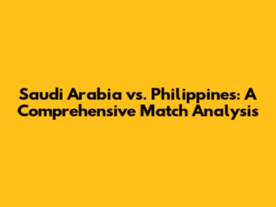 Saudi Arabia Vs. Philippines: Head-to-Head & Match Analysis