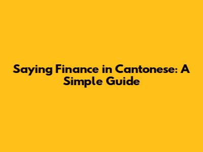 Saying Finance In Cantonese: A Simple Guide