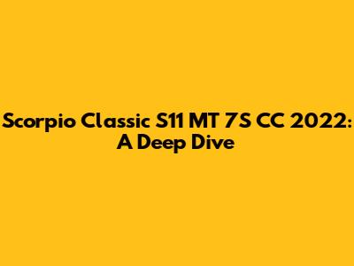 Hey guys! Today, we're diving deep into the Scorpio Classic S11 MT 7S CC 2022. This beast of a machine has been turning heads, and for good reason. We're going to explore everything from its engine and performance to its comfort and features. So, buckle up and let's get started!