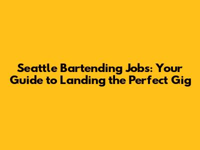 Seattle Bartending Jobs: Your Guide To Landing The Perfect Gig