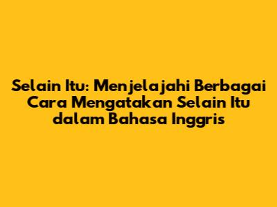 Memahami Konsep "Selain Itu" dalam Bahasa Inggris