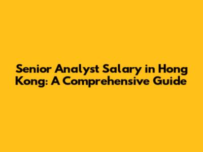 Senior Analyst Salary In Hong Kong: A Comprehensive Guide