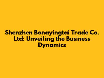 Hey guys! Let's dive deep into the world of Shenzhen Bonayingtai Trade Co. Ltd. This company, like many others in Shenzhen, China, operates in a vibrant and dynamic business environment. Shenzhen, known as China's Silicon Valley, is a hub for innovation, manufacturing, and international trade. Understanding the nuances of a company like Bonayingtai provides valuable insights into the broader economic landscape and the strategies employed by businesses in this competitive region. In this article, we'll explore various aspects of Shenzhen Bonayingtai Trade Co. Ltd, examining its potential areas of operation, market presence, and the factors that contribute to its success (or challenges). We'll also consider how the company might be adapting to the ever-evolving global trade environment.