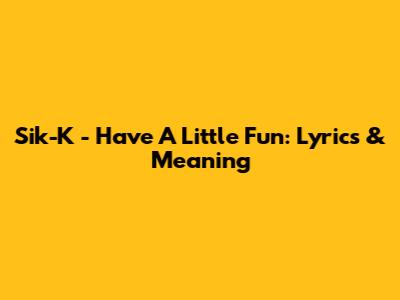 Let's dive into the world of Sik-K and his catchy tune, "Have A Little Fun." This track is all about letting loose, enjoying life, and not taking things too seriously. If you're looking for a song to boost your mood and remind you to chill out, you've come to the right place. We'll break down the lyrics, explore the meaning behind them, and understand why this song resonates with so many people.