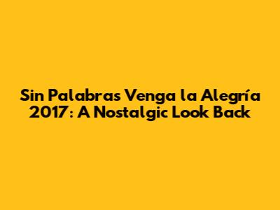 Sin Palabras Venga La Alegría 2017: A Nostalgic Look Back