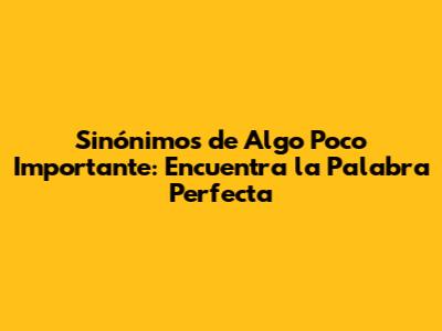 Sinónimos De Algo Poco Importante: Encuentra La Palabra Perfecta
