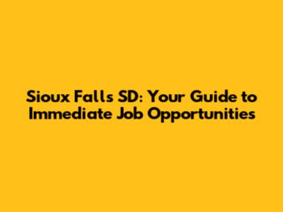 Hey there, job seekers! If you're on the hunt for immediate jobs in Sioux Falls, SD, you've landed in the right spot. We're diving deep into the job market, uncovering the best ways to find those quick-start positions, and giving you the lowdown on what makes Sioux Falls a fantastic place to work and live. Get ready to boost your job search game and land that gig ASAP!
