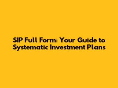 SIP Full Form: Your Guide To Systematic Investment Plans