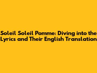 Hey everyone! Ever stumbled upon a song and been instantly captivated by its melody, even if you didn't understand a single word? That's the magic of music, right? Today, we're going to dive headfirst into the enchanting world of "Soleil Soleil Pomme," a tune that has a certain je ne sais quoi that is sure to charm you. We'll be breaking down the lyrics and providing you with a helpful English translation. So, whether you're a seasoned music enthusiast or just starting your musical journey, get ready to explore the beauty and meaning behind this fantastic song. Let's get started, guys!