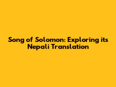 Song Of Solomon: Exploring Its Nepali Translation