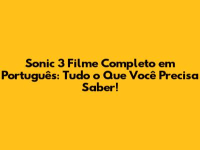 Sonic 3: Assista Ao Filme Completo Em Português!