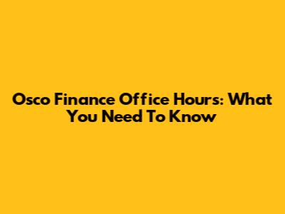 Osco Finance Office Hours: What You Need To Know