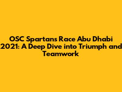 The OSC Spartans are a team of athletes and enthusiasts who participate in various Spartan Races. Representing a diverse group of individuals, the OSC Spartans share a common passion for pushing their limits and achieving extraordinary feats of physical endurance. Their participation in the Abu Dhabi race underscores their commitment to the Spartan spirit and their dedication to teamwork and perseverance. The team's preparation, strategy, and performance provide valuable insights into what it takes to succeed in such a demanding event.