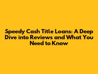 Hey everyone! Let's talk about Speedy Cash title loans! If you're here, chances are you're considering this option, and you're probably looking for the lowdown on what people are saying. Well, you've come to the right place! We're going to dive deep into Speedy Cash title loans reviews, exploring everything from the pros and cons to what you should be aware of before you sign on the dotted line. Title loans can be a lifeline in a pinch, but they also come with their own set of potential pitfalls. So, grab a cup of coffee (or your favorite beverage), and let's get started. We'll break down the good, the bad, and the things you absolutely MUST know.