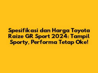 Guys, siapa nih yang lagi ngincer mobil SUV compact yang keren abis dan sporty abis? Yup, Toyota Raize GR Sport 2024 jawabannya! Mobil yang satu ini emang lagi naik daun banget, terutama buat kalian yang suka gaya sporty tapi nggak mau ngorbanin performa dan kenyamanan. Nah, di artikel ini kita bakal kupas tuntas semua yang perlu kalian tahu soal Raize GR Sport 2024, mulai dari speknya yang gokil, fiturnya yang bikin nagih, sampai yang paling penting, harga Toyota Raize GR Sport 2024 yang bakal bikin dompet kalian sedikit merinding tapi worth it banget! Siap-siap ya, karena bakal banyak info menarik yang bikin kalian makin jatuh cinta sama SUV compact yang satu ini. Kita bakal bedah every single detail, jadi pastikan kalian baca sampai habis biar nggak ketinggalan gosip ter-update soal Raize GR Sport terbaru ini. Toyota Raize GR Sport 2024 ini bukan cuma sekadar mobil, tapi statement piece yang nunjukkin gaya hidup kalian yang dinamis dan modern. Buat kalian para young professional atau pasangan muda yang lagi cari mobil pertama yang stylish dan fungsional, Raize GR Sport ini patut banget masuk list kalian. Desain eksteriornya yang agresif dan sporty berkat sentuhan GR (Gazoo Racing) bikin mobil ini langsung mencuri perhatian di jalan. Nggak heran kalau banyak yang penasaran soal harga Toyota Raize GR Sport 2024 karena memang penampilannya nggak main-main. Tapi tenang aja, di balik tampangnya yang sangar, mobil ini tetep menawarkan kepraktisan dan efisiensi yang jadi ciri khas Toyota. Jadi, selain kelihatan keren, kalian juga dapat mobil yang reliable dan irit buat penggunaan sehari-hari. Yuk, langsung aja kita intip lebih dalam lagi apa aja sih yang bikin Toyota Raize GR Sport 2024 ini spesial banget.