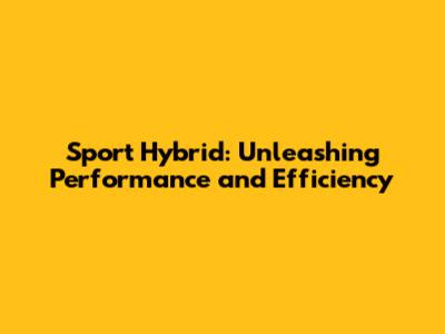 Sport Hybrid: Unleashing Performance And Efficiency