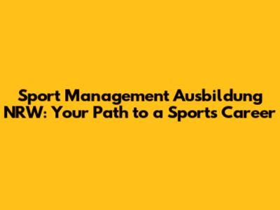 Sport Management Ausbildung NRW: Your Path To A Sports Career