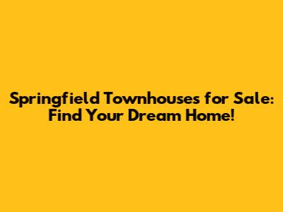 Springfield Townhouses For Sale: Find Your Dream Home!