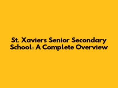 St. Xavier's Senior Secondary School: A Complete Overview