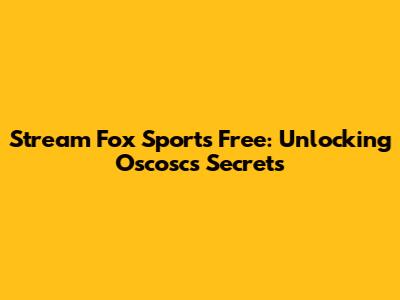Stream Fox Sports Free: Unlocking Oscosc's Secrets