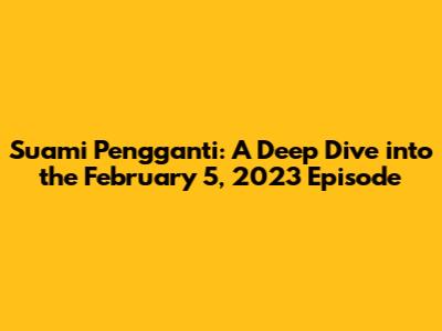 Alright, guys! Let's dive deep into the thrilling world of Suami Pengganti! Specifically, we're going to break down what went down on the February 5, 2023, episode. This soap opera, known for its twists, turns, and dramatic flair, has captured the hearts of many, and for good reason! So, grab your snacks, settle in, and let's recap the highlights, analyze the key moments, and maybe even predict what's coming next. This episode was packed with drama, emotional moments, and character developments that really set the stage for what would come later in the series. The complexity of the relationships and the high stakes made it a must-watch for all Suami Pengganti enthusiasts. So, without further ado, let's jump right in and see what unfolded on that fateful day of February 5th.