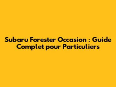 Subaru Forester Occasion : Guide Complet Pour Particuliers