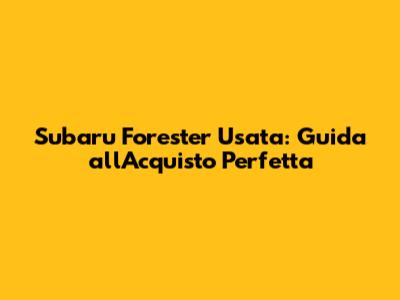 Fonti per l'Acquisto di una Forester Usata