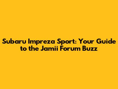 Hey car enthusiasts! Are you guys curious about the Subaru Impreza Sport and what the Jamii Forum is saying about it? Well, you've come to the right place! We're diving deep into the world of the Subaru Impreza Sport, exploring everything from its performance and reliability to what the owners are saying on Jamii Forum. This article is your ultimate guide, covering a wide range of topics to help you make informed decisions. We'll be looking at the Subaru Impreza Sport's strengths, weaknesses, and common issues, all while keeping a finger on the pulse of the Jamii Forum community. Buckle up, because we're about to embark on a thrilling journey through the world of the Subaru Impreza Sport!