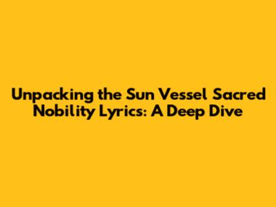 Hey music lovers! Ever stumbled upon a song that just hits different? That's the magic of Sun Vessel Sacred Nobility lyrics. It's not just a catchy tune; it's a journey through words that resonate deep within. If you've been humming along and wondering what it all means, you've come to the right place, guys. We're about to break down these powerful lyrics, verse by verse, and explore the deeper meanings that make this song a true gem. Get ready to connect with the music on a whole new level as we uncover the artistry behind the words.