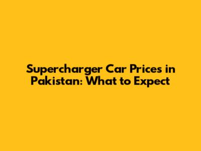 Supercharger Car Prices In Pakistan: What To Expect