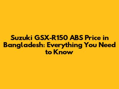 Suzuki GSX-R150 ABS Price In Bangladesh: A Comprehensive Guide