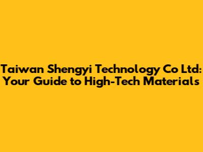 Taiwan Shengyi Technology: Your Guide To High-Tech Materials