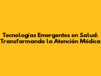 Tecnologías Emergentes En Salud: El Futuro De La Atención Médica