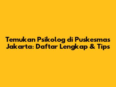 Temukan Psikolog Di Puskesmas Jakarta: Daftar Lengkap & Tips