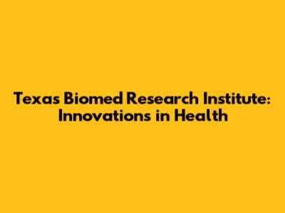 Texas Biomed Research Institute: Innovations In Health