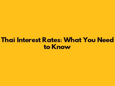 Thai Interest Rates: What You Need To Know