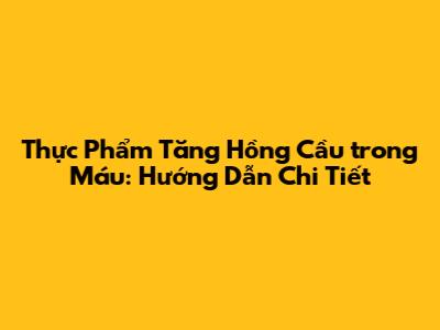Thực Phẩm Tăng Hồng Cầu Trong Máu: Hướng Dẫn Chi Tiết