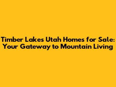 Hey guys, are you dreaming of a life surrounded by stunning mountain scenery, fresh air, and a peaceful community? If so, homes for sale in Timber Lakes, Utah might just be your perfect match! This incredible area offers a unique blend of tranquility and accessibility, making it a highly sought-after location for those looking to escape the hustle and bustle of city life without being too far from modern conveniences. Timber Lakes is more than just a place to live; it's a lifestyle. Imagine waking up to panoramic views of snow-capped peaks in the winter and lush green valleys in the summer, with the sounds of nature as your soundtrack. This community is renowned for its natural beauty, abundant wildlife, and a strong sense of neighborly connection. Whether you're seeking a cozy cabin for weekend getaways, a spacious family home, or an investment property in a picturesque setting, Timber Lakes has something to offer everyone. We're going to dive deep into what makes this area so special, explore the types of properties available, and give you the lowdown on finding your dream home in this mountain paradise. So, grab a cup of coffee, get comfy, and let's explore the magic of Timber Lakes!