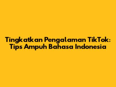 Tingkatkan Pengalaman TikTok: Tips Ampuh Bahasa Indonesia