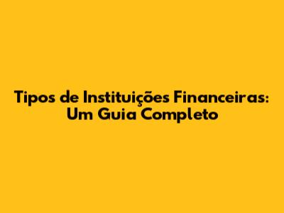 Tipos De Instituições Financeiras: Um Guia Completo