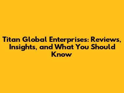 Titan Global Enterprises: Reviews, Insights, And What You Should Know
