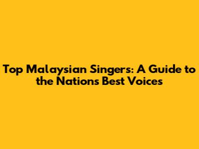 Top Malaysian Singers: A Guide To The Nation's Best Voices