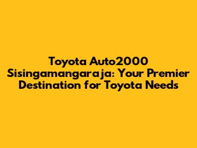 Toyota Auto2000 Sisingamangaraja: Your Ultimate Guide
