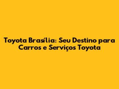Toyota Brasília: Seu Destino Para Carros E Serviços Toyota