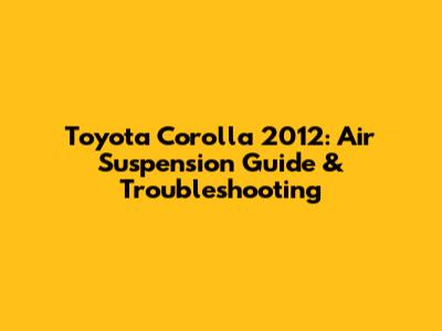 Toyota Corolla 2012: Air Suspension Guide & Troubleshooting