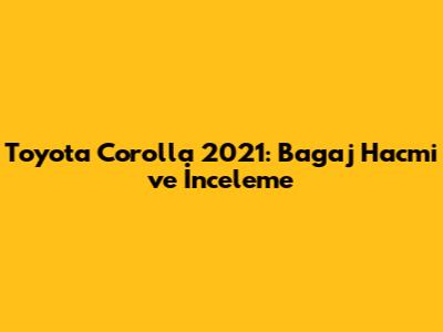 2021 Toyota Corolla Bagaj Hacmi: Genel Bakış